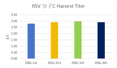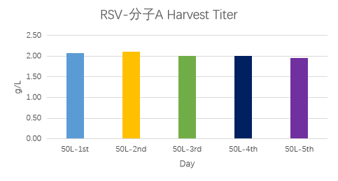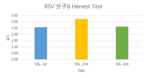 RSV分子A的5个批次的表达量均在2g/L左右,RSV分子B的表达量最高可达3.2g/L左右。